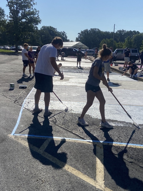 The Seniors had a lot of fun personalizing their parking spot with paint today. We have some very creative students here at Cuba High. This was a great way to start off their year.